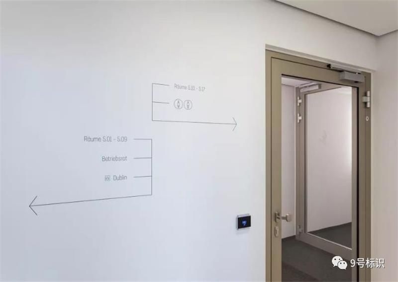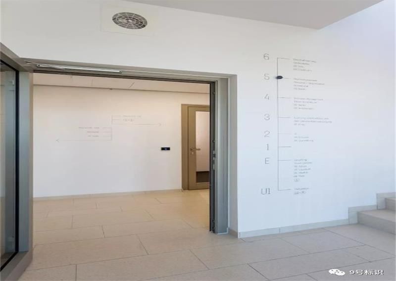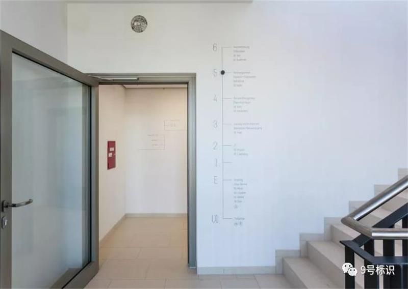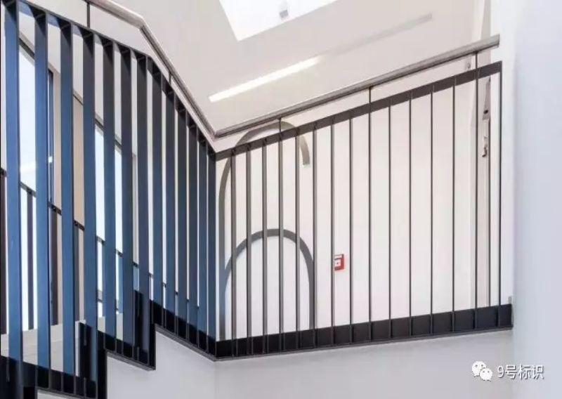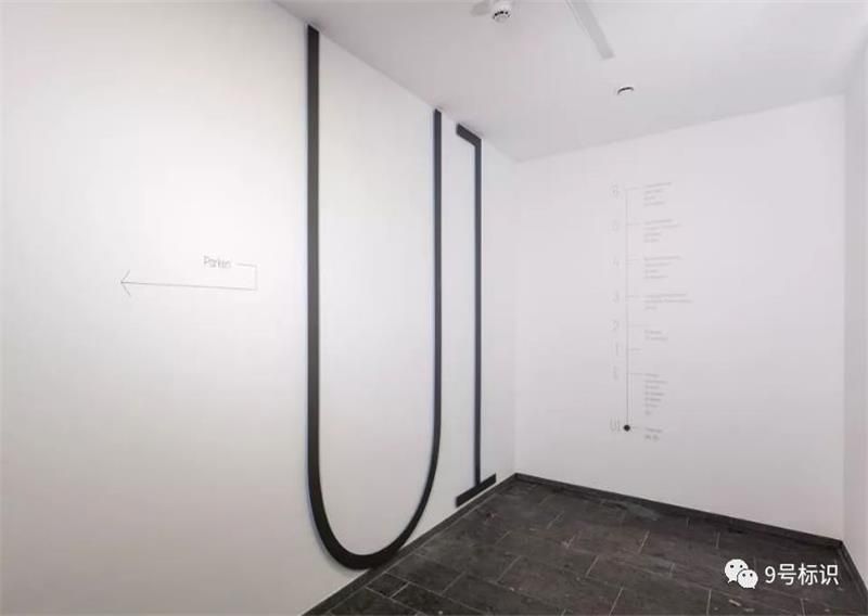 此套标识系统排版非常精细和简单,它遵循严格的图解方法。为了使文字更好的融入建筑空间中,文字直接应用在墙壁上,并在设计中用三维元素作为点缀。